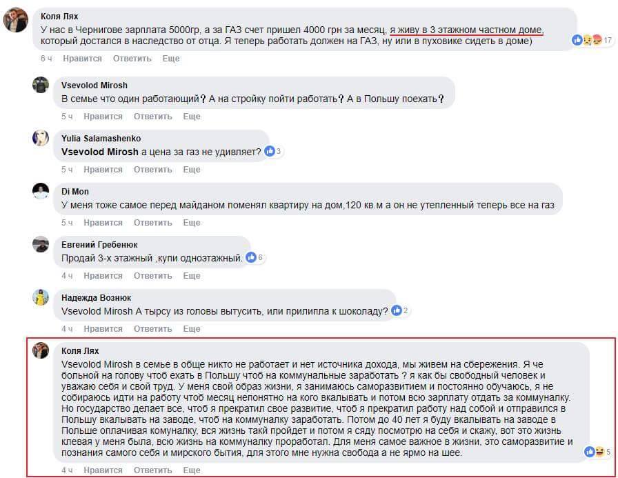 Вибачте, але переважна бiльшiсть украiнцiв так i живуть, працюючи все життя, як кiнь (незалежно чи в Украiнi чи то за кордоном), i не заощадили собi анi копiйчини, а все йде на комунальнi послуги, їжу, тощо, дехто все життя платить комусь за орендоване житло. Та не тiльки комунальнi послуги, а взагалi рiвень зарплат, пенсiй та цiн це виживання, а не життя, як в розвинутих країнах. Знаю людей, що мають 2-3 та бiльше квартир, здають в аренду, мають не дешевi авто, й .... отримують субсидiю на житло, й сплачують копiйки за послуги (сам бачив рахунки). Як так? Хоча згоден, тарифи занадто великi.